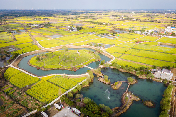 3月17日拍攝的油菜花節(jié)核心景區(qū)(無人機(jī)照片)。湖北省沙洋縣常年種植油菜面積70余萬畝,當(dāng)?shù)赜筒嘶êI钍苡慰拖矏邸?023年3月以來,在沙洋縣油菜花節(jié)核心景區(qū)曾集鎮(zhèn)張池村等地,游客成群結(jié)隊(duì),在金黃色的田野中徜徉,感受美好春光。近年來,沙洋縣將油菜產(chǎn)業(yè)與文旅產(chǎn)業(yè)深度融合,通過賞花經(jīng)濟(jì)帶動鄉(xiāng)村餐飲、民宿等產(chǎn)業(yè)發(fā)展,助力鄉(xiāng)村振興。