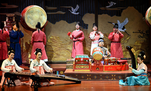 融合大唐樂(lè)舞和西安鼓樂(lè)的舞臺(tái)劇《鼓》。記者 劉瀟 攝