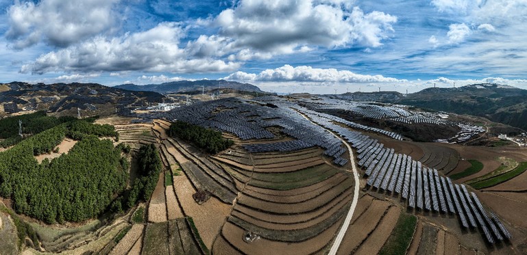 這是3月20日拍攝的云南省巧家縣海壩光伏電站(無人機(jī)照片)。金沙江下游風(fēng)光水儲(chǔ)一體化國(guó)家級(jí)示范基地位于金沙江下游干熱河谷地段,主要依靠當(dāng)?shù)厮婇_發(fā)項(xiàng)目統(tǒng)籌建設(shè)風(fēng)能、太陽能電站。目前,云南省巧家縣海壩、小羊窩等光伏項(xiàng)目已投產(chǎn)發(fā)電。