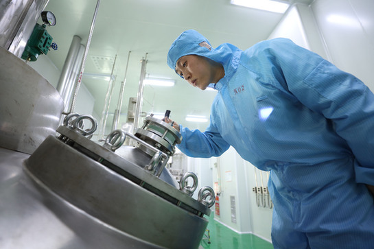記者近日來(lái)到寧夏恒康科技有限公司,在鹽酸二甲雙胍生產(chǎn)車間潔凈區(qū)看到,員工王亞卓正握著手電筒仔細(xì)檢查裝置?!斑@個(gè)裝置叫結(jié)晶釜,需要進(jìn)行兩次結(jié)晶,釜內(nèi)溫度可以實(shí)現(xiàn)全程自動(dòng)控制,精準(zhǔn)調(diào)控溫度,等釜內(nèi)溫度降至工藝控制后,再進(jìn)行轉(zhuǎn)釜壓濾,最后產(chǎn)出鹽酸二甲雙胍的濕品?!蓖鮼喿拷榻B著生產(chǎn)流程。