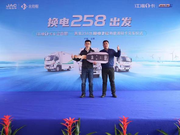 “攜手換電共向未來”,3月23日,江淮1卡&全路程首批258臺(tái)換電1號(hào)新能源輕卡交車儀式在安徽合肥盛大舉行,安徽江淮汽車集團(tuán)股份有限公司、全路程集團(tuán)以及菜鳥物流相關(guān)領(lǐng)導(dǎo)出席。作為全國(guó)首個(gè)行業(yè)首家打造換電1號(hào)的企業(yè),江淮1卡批量交付換電1號(hào),在換電輕卡行業(yè)再次構(gòu)筑領(lǐng)先優(yōu)勢(shì)。