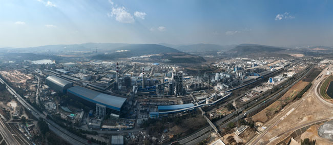 云天化集團(tuán)天安化工磷肥制造中心(無人機(jī)照片)。新華社記者 江文耀 攝