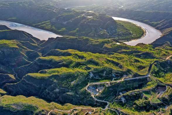 這是2019年8月28日拍攝的山西省永和縣黃河岸邊景色(無人機(jī)照片)。新華社記者 曹陽 攝