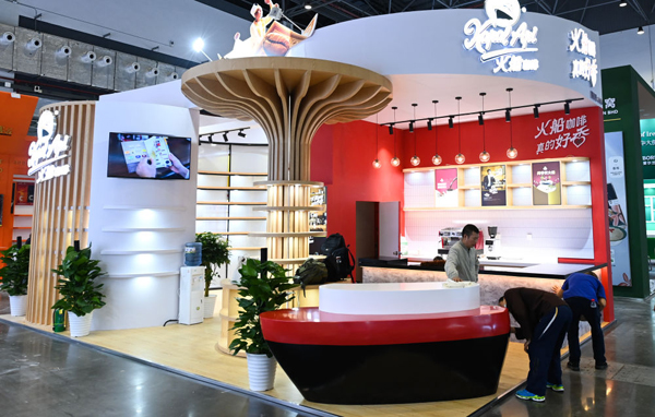 印尼咖啡企業(yè)火船咖啡展臺基本搭建完成(4月7日攝)。新華社記者 楊冠宇 攝