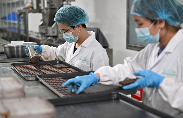 走進位于??诮瓥|新區(qū)的加綠巧食品制造業(yè)(海南)有限責任公司車間,濃郁的巧克力香味撲鼻而來。每天,數(shù)十種巧克力持續(xù)從這里產(chǎn)出,進入市場。