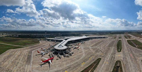 這是2021年11月20日拍攝的海口美蘭國(guó)際機(jī)場(chǎng)二期項(xiàng)目(無人機(jī)照片)。新華社記者 楊冠宇 攝