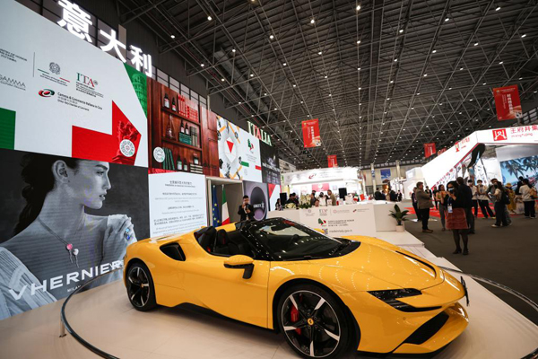 這是2023年4月10日拍攝的消博會(huì)意大利館展出的跑車。新華社記者 張麗蕓 攝