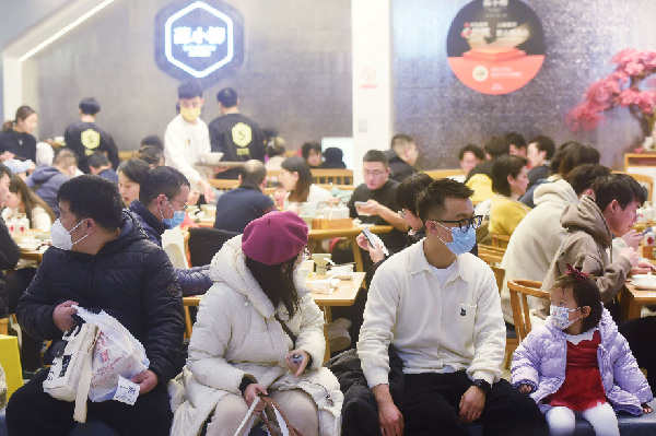 顧客在杭州一家餐廳外等待就餐。資料照片