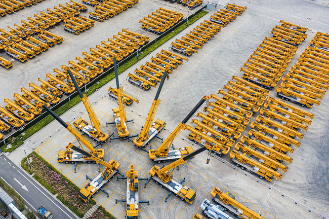 江蘇徐工集團(tuán)重型機械有限公司產(chǎn)品調(diào)試場(無人機照片)。新華社發(fā)