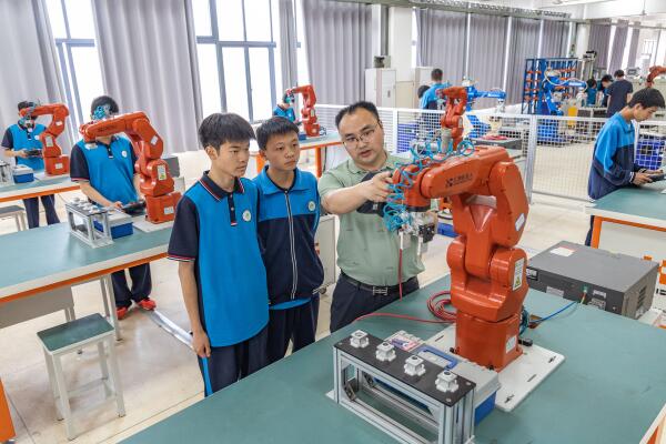 5月17日,在重慶永川職教中心,老師在實訓室指導學生。