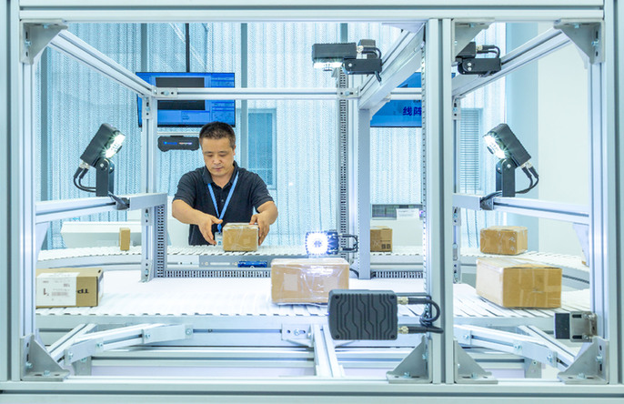 一條飛速運(yùn)轉(zhuǎn)的傳送帶,正精準(zhǔn)識(shí)別發(fā)往全國(guó)各地的大小快遞包裹。它1小時(shí)能處理快遞9.6萬(wàn)件,分揀準(zhǔn)確率達(dá)99.99%,比此前的人工分揀實(shí)現(xiàn)200倍左右的效率提升。