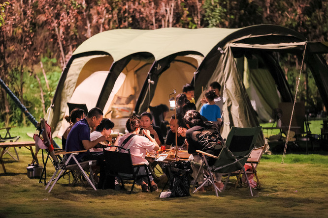 游客在露營地體驗戶外娛樂。