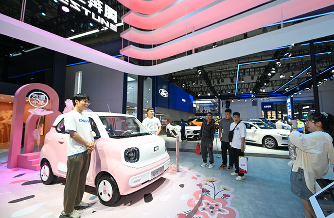 7月17日,觀眾在長(zhǎng)春汽博會(huì)一汽奔騰品牌汽車(chē)展區(qū)拍照。正在長(zhǎng)春國(guó)際會(huì)展中心舉行的第20屆長(zhǎng)春國(guó)際汽車(chē)博覽會(huì)上,眾多自主品牌汽車(chē)亮相,吸引不少參觀者。