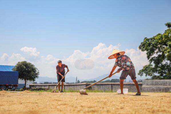 夏收時節(jié),湖南省永州市藍山縣早稻喜獲豐收,農(nóng)民趁著晴好天氣忙著收割、晾曬,一派豐收景象。新華社發(fā)(彭華 攝)