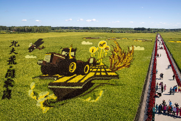 游客在北大荒集團(tuán)閆家崗農(nóng)場(chǎng)有限公司農(nóng)業(yè)現(xiàn)代化示范區(qū)游覽。
