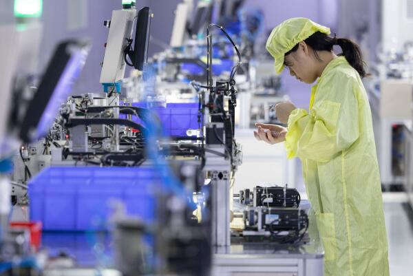 8月14日,在贛州訊康電子科技有限公司,工作人員檢查T(mén)1-T2全自動(dòng)穿環(huán)機(jī)生產(chǎn)的元器件。江西省贛州市著力建設(shè)具有完整性、先進(jìn)性、安全性的現(xiàn)代化產(chǎn)業(yè)體系,堅(jiān)持把發(fā)展經(jīng)濟(jì)的著力點(diǎn)放在實(shí)體經(jīng)濟(jì)上,做優(yōu)品牌做強(qiáng)產(chǎn)業(yè),推動(dòng)產(chǎn)業(yè)高質(zhì)量發(fā)展。新華社記者 才揚(yáng) 攝