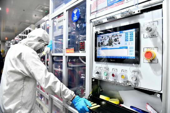 6月6日,在山東吉利欣旺達(dá)動(dòng)力電池有限公司,工作人員在鋰電池生產(chǎn)線值守。 新華社記者 郭緒雷 攝