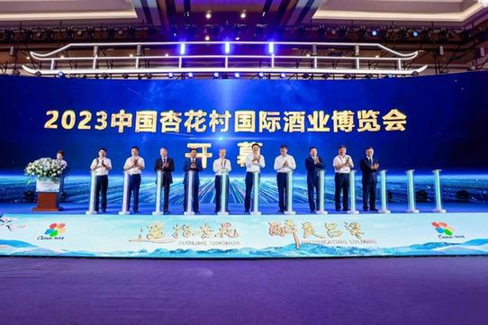 在與會(huì)領(lǐng)導(dǎo)嘉賓的共同見證下,山西省人大常委會(huì)副主任賀天才,山西省政府副省長劉旸,山西省政協(xié)副主席李正印,中國酒業(yè)協(xié)會(huì)理事長宋書玉,呂梁市委書記孫大軍,呂梁市委副書記、市長張廣勇,呂梁市人大常委會(huì)主任劉振國,呂梁市政協(xié)主席喬曉峰,汾酒黨委書記、董事長袁清茂,汾陽市委書記李正奎登臺(tái),按動(dòng)啟動(dòng)裝置,“2023中國杏花村國際酒業(yè)博覽會(huì)”正式開幕。