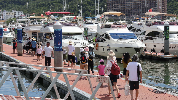 8月23日,在三亞游艇旅游中心,不少游客準(zhǔn)備登上游艇出海游玩。