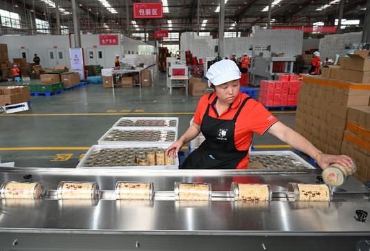 福建省寧德市加快農(nóng)村電商創(chuàng)業(yè)園和電商直播基地建設(shè)。圖為員工在辰頤嚴選產(chǎn)業(yè)園的電商農(nóng)產(chǎn)品深精加工車間檢查農(nóng)產(chǎn)品包裝。新華社記者 林善傳 攝