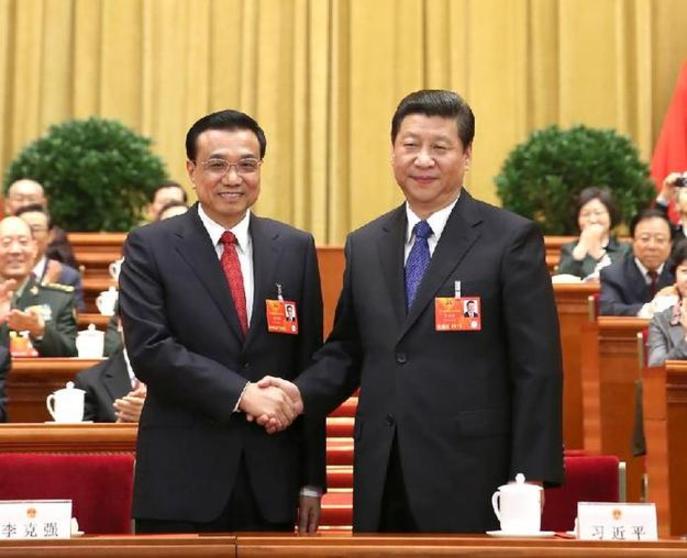 2013年3月15日,第十二屆全國人民代表大會第一次會議在北京人民大會堂舉行第五次全體會議。會議經(jīng)過投票表決,決定李克強為中華人民共和國國務院總理。這是習近平同志和李克強同志親切握手。