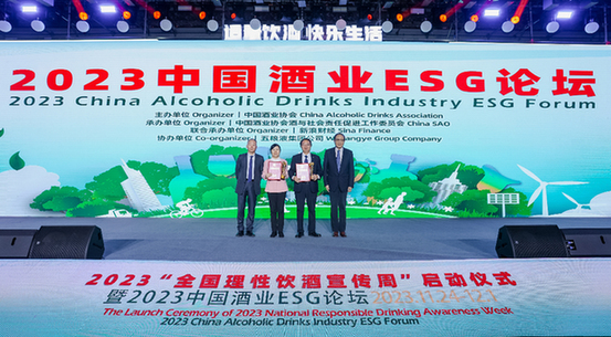 11月24日,2023“全國理性飲酒宣傳周”啟動儀式暨2023中國酒業(yè)ESG論壇在北京舉行。作為“2023年酒與社會責(zé)任促進工作委員會”當(dāng)值理事長單位,五糧液向全社會倡導(dǎo)健康、理性、適度飲酒,助推酒業(yè)持續(xù)、科學(xué)、健康、和諧發(fā)展?;顒悠陂g中國酒業(yè)ESG論壇發(fā)布2022年度“中國酒業(yè)ESG年度優(yōu)秀案例”,五糧液憑借在履行社會責(zé)任和踐行ESG理念等方面的先進經(jīng)驗與做法,獲評“2022年度社會責(zé)任典范”案例。