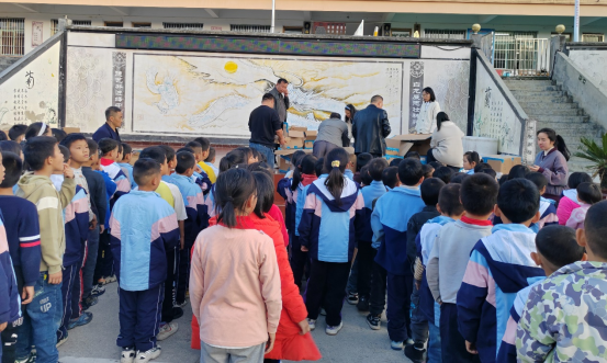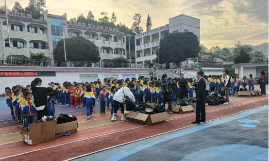 石阡縣本莊鎮(zhèn)白龍小學(xué)安踏茁壯成長公益計劃裝備包發(fā)放現(xiàn)場