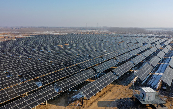 河北秦皇島昌黎縣荒佃莊鎮(zhèn)附近的一處光伏發(fā)電場(無人機照片)。新華社記者 楊世堯 攝