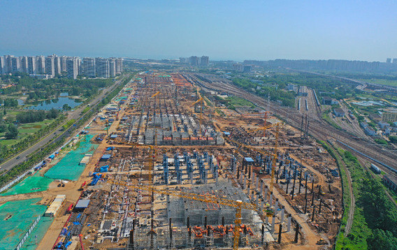 “截至目前項(xiàng)目已經(jīng)完成主體工程施工,正在進(jìn)行室內(nèi)裝飾裝修和外立面裝修,以及室外配套工程施工?!表?xiàng)目施工方中鐵廣州局集團(tuán)??谛潞8酆湍细邸岸€口岸”(貨運(yùn))集中查驗(yàn)場所建設(shè)項(xiàng)目總工程師李欽臣說,為保障工期節(jié)點(diǎn),項(xiàng)目投入近2000名工人。