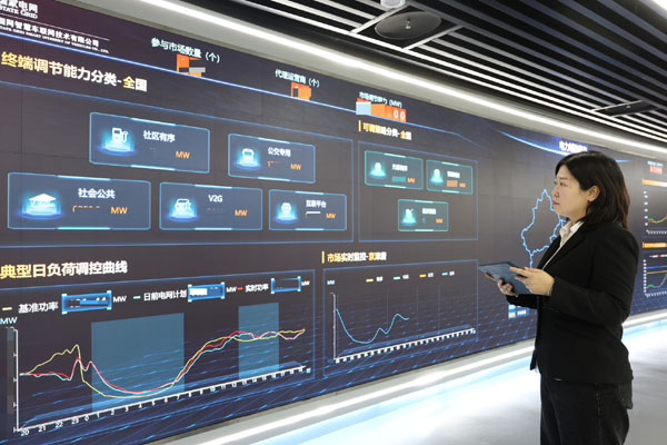 工作人員通過國家電網(wǎng)智慧車聯(lián)網(wǎng)平臺監(jiān)測負荷聚合調(diào)控情況。受訪者供圖