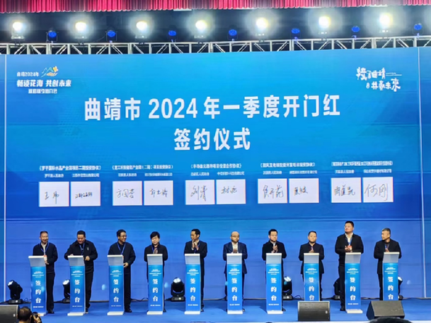 曲靖市2024年一季度“開門紅”簽約儀式現(xiàn)場(chǎng)(2024年2月24日攝)。