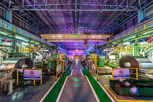 中國寶武寶鋼股份寶山基地冷軋廠C008智能車間(“黑燈工廠”)內(nèi)景(2022年2月8日攝)?!∮浾摺》絾础z