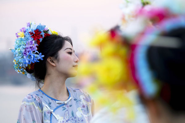 “源于泉州蟳埔村的簪花圍近來(lái)最受大家追捧。有人說(shuō)骨笄頭飾是古代‘骨針安發(fā)’遺風(fēng),也有人說(shuō)蟳埔村民是阿拉伯人后裔,簪花圍源于中亞婦女戴花的習(xí)俗?!甭门牡曦?fù)責(zé)人龍路存是蘇文竹的老鄉(xiāng),在泉州考察一個(gè)禮拜后,決定在福州落腳。他說(shuō),市民、游客頭戴簪花圍,身穿民族服飾,既感受傳統(tǒng)文化的魅力,也表達(dá)對(duì)幸福生活的熱愛(ài)。