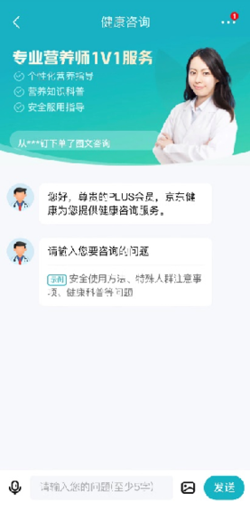 消費(fèi)者可以進(jìn)入京東APP搜索“問(wèn)營(yíng)養(yǎng)師”,即可一鍵在線向營(yíng)養(yǎng)師發(fā)起咨詢。其中,老年人、新手媽媽、術(shù)后康復(fù)等人群是目前使用“問(wèn)營(yíng)養(yǎng)師”服務(wù)最多的用戶群體。