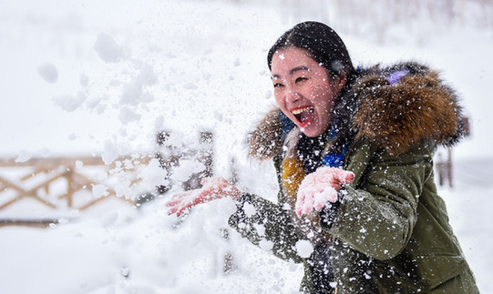 長白山景區(qū)內玩雪的游客。 記者 王昊飛 攝