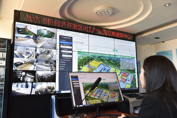 智能化手段正在助力園區(qū)對排放進(jìn)行精準(zhǔn)管控。在園區(qū)化工產(chǎn)業(yè)園應(yīng)急指揮中心,化工園區(qū)管理辦公室主任孫宇熙輕點鼠標(biāo),便可查看園區(qū)內(nèi)化工企業(yè)的排放情況,地下水、地表水、廢水、廢氣等指標(biāo)一目了然,實現(xiàn)園區(qū)應(yīng)急、消防、環(huán)保、車輛人員等數(shù)字化管理?!叭h從各部門遴選7名化工專業(yè)人才到園區(qū)工作,通過云管理平臺,幫助園區(qū)進(jìn)行能耗、評估、運(yùn)營等的數(shù)據(jù)監(jiān)測以及入駐企業(yè)創(chuàng)新指數(shù)等的跟蹤監(jiān)測。”孫宇熙說。