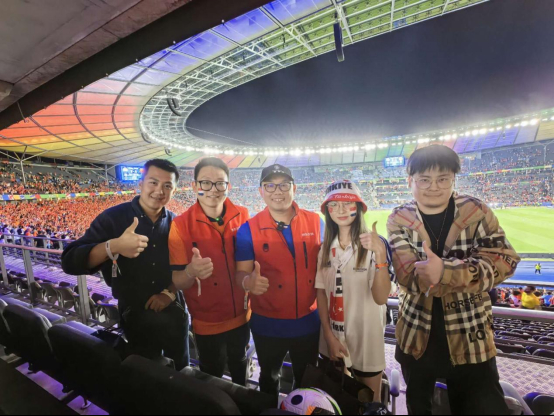 比賽當(dāng)天,京東采銷早早就來(lái)到柏林奧林匹克體育場(chǎng),通過(guò)直播帶領(lǐng)大家領(lǐng)略了球場(chǎng)外的氛圍、品嘗球場(chǎng)周邊的德國(guó)當(dāng)?shù)仄【?、介紹荷蘭和土耳其兩支球隊(duì)此前的表現(xiàn),并拿出了迷你足球裝備與現(xiàn)場(chǎng)球迷共同切磋球技。同時(shí),針對(duì)直播間觀眾關(guān)于球場(chǎng)內(nèi)外的問(wèn)題,京東采銷也進(jìn)行了互動(dòng)解答,讓大家在屏幕前也能身臨其境地感受到歐洲杯的火熱氛圍。