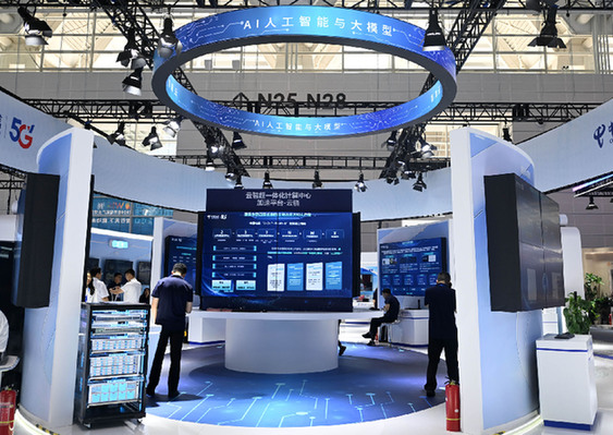觀眾在2024世界智能產(chǎn)業(yè)博覽會(huì)中國(guó)電信展區(qū)參觀。 記者 趙子碩 攝