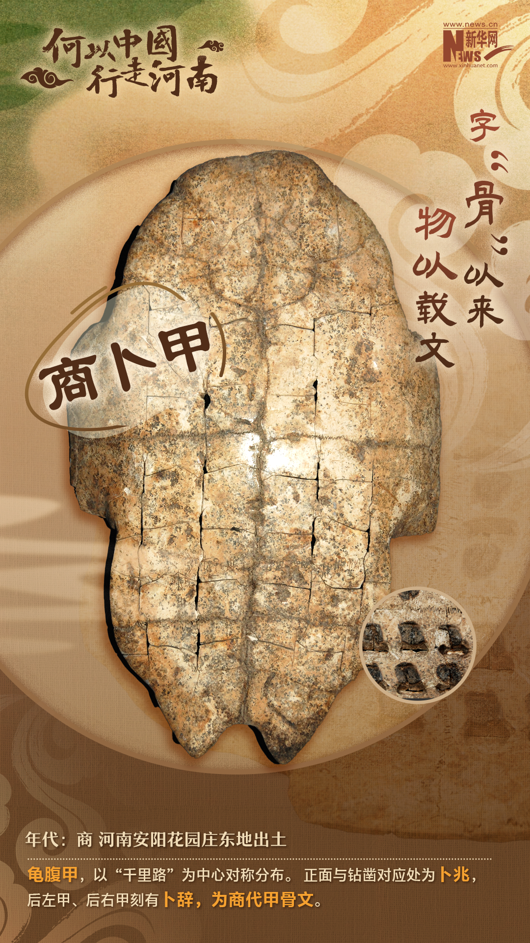 “一片甲骨驚天下,千年漢字貫古今?!焙幽习碴柺鞘澜缥幕z產(chǎn)殷墟所在地、世界記憶遺產(chǎn)甲骨文出土地,被譽(yù)為“文字之都”。