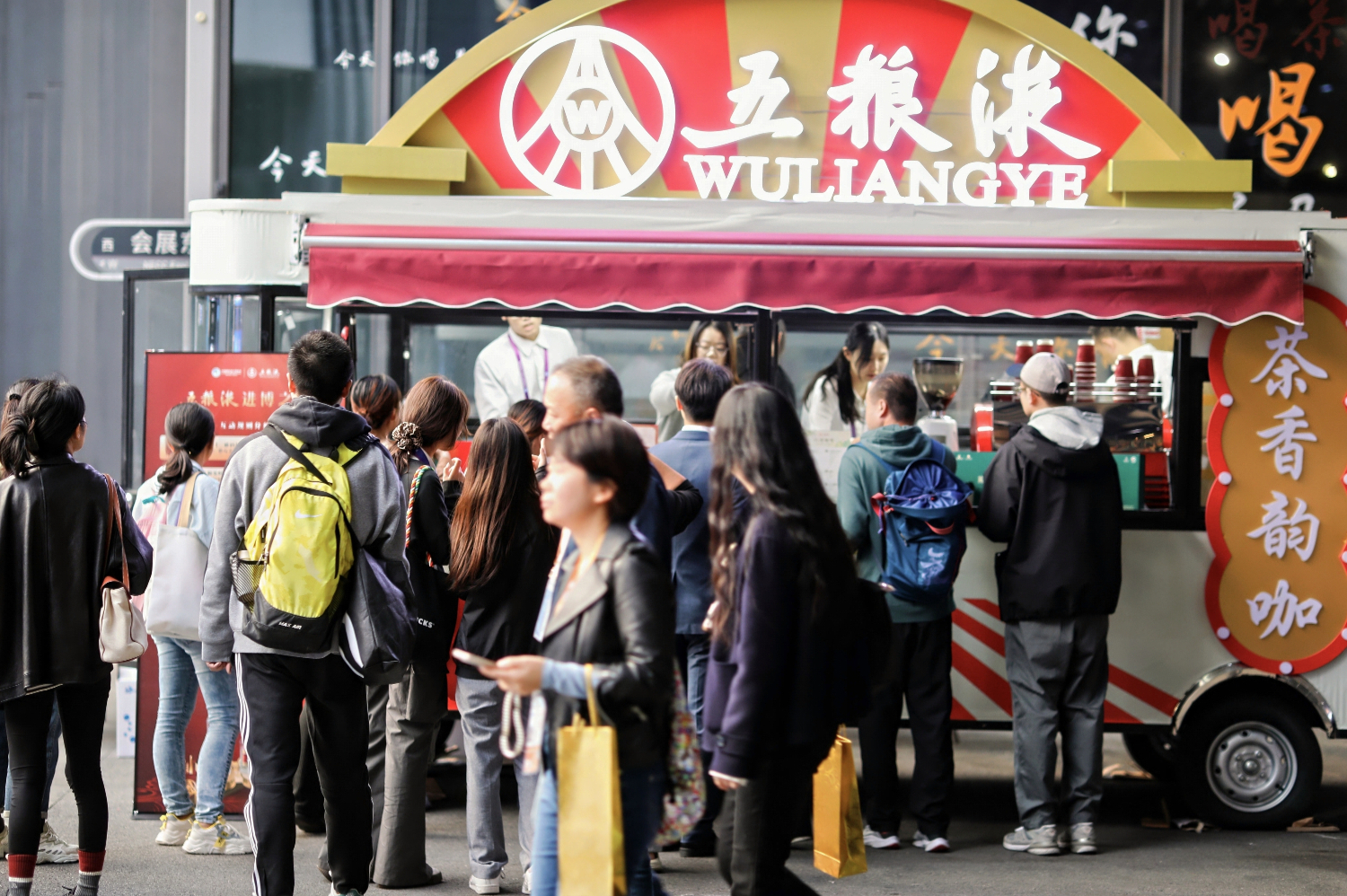 作為連續(xù)七年參加進博會的“全勤生”,為與全球展商共享“7”緣,五糧液準備了互動打卡、趣味問卷、五糧液巔峰挑戰(zhàn)等一系列精彩紛呈的互動體驗活動;“五福進寶”憨態(tài)可掬的“國寶”熊貓形象引來中外與會嘉賓駐足觀看、打卡留念;傳統(tǒng)酒肆風格的雞尾酒餐車、舊上海灘風格的白酒咖啡/茶餐車兩輛主題展示車,讓四海來賓在品味“大國濃香”的同時,也帶給觀眾別出心裁的“五糧液進博之旅”。