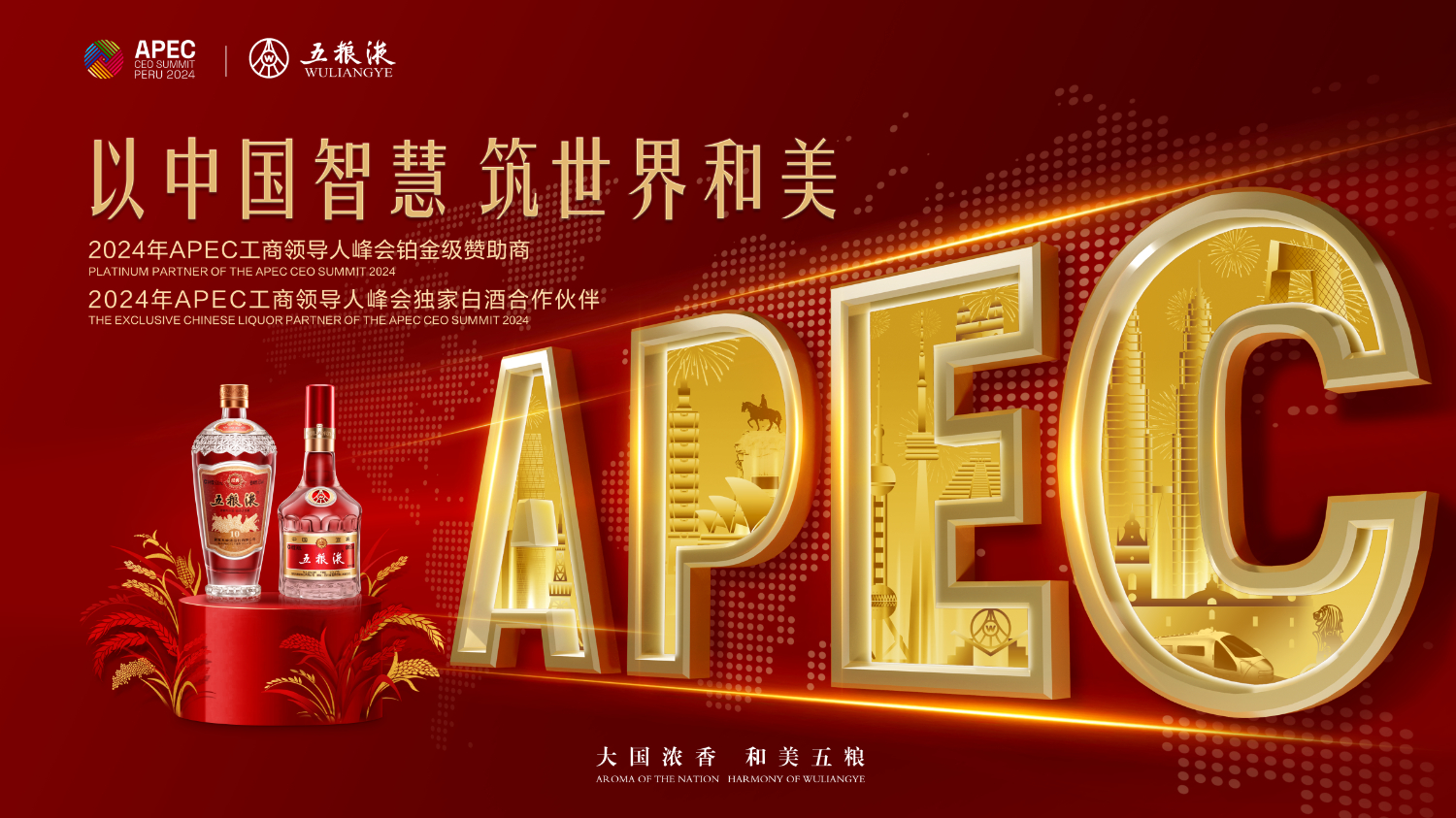 亞太經(jīng)合組織(APEC)第三十一次領(lǐng)導(dǎo)人非正式會議即將在秘魯利馬舉行,民族品牌代表五糧液將作為本屆APEC舉辦的工商界最高峰會——2024年APEC工商領(lǐng)導(dǎo)人峰會(以下簡稱“APEC峰會”)“鉑金級贊助商”和“獨家白酒合作伙伴”亮相利馬,深入?yún)⑴c峰會及配套活動議程,并在峰會設(shè)置展位,多維呈現(xiàn)來自東方的匠心釀藝、品質(zhì)魅力與“和美”文化底蘊。