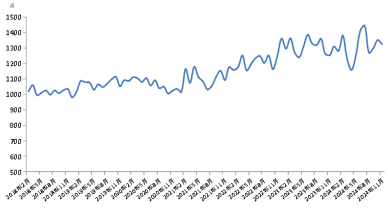 分城市來(lái)看,截至2024年11月,北京、上海、呼和浩特、重慶、南昌、蘭州、烏魯木齊、南京、武漢、長(zhǎng)春、鄭州、西寧、貴陽(yáng)、青島超市銷(xiāo)售食用鹽均價(jià)較2024年10月上漲;哈爾濱、濟(jì)南超市銷(xiāo)售食用鹽均價(jià)較2024年10月持平;廣州、合肥、西安、銀川、天津、南寧、杭州、太原、長(zhǎng)沙、昆明超市銷(xiāo)售食用鹽均價(jià)較2024年10月下跌。