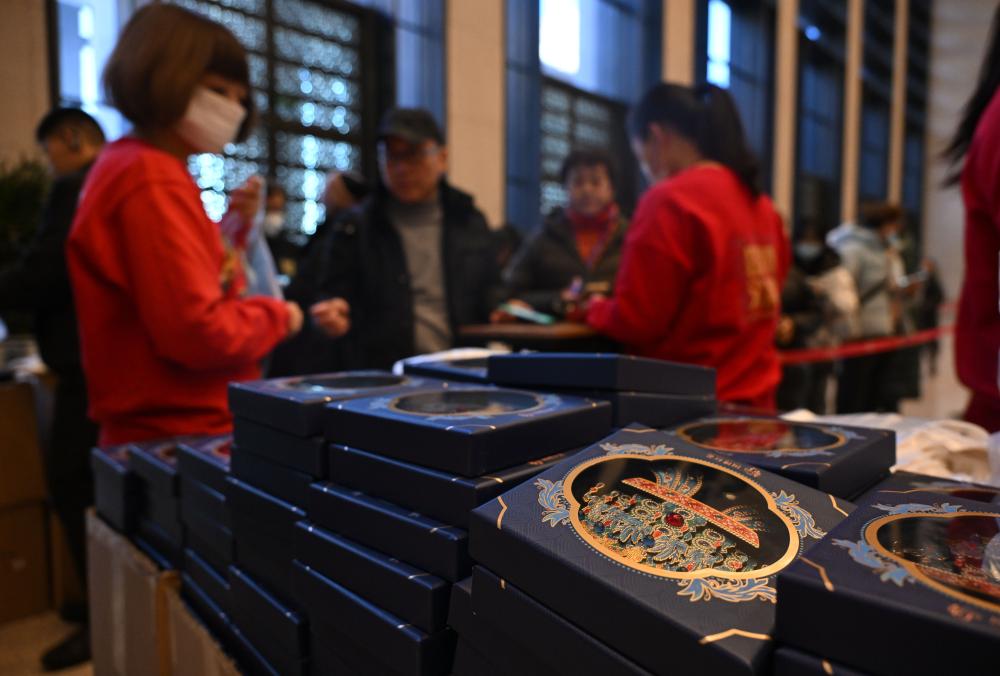 12月3日,觀眾在中國國家博物館排隊購買鳳冠冰箱貼。新華社記者 金良快 攝