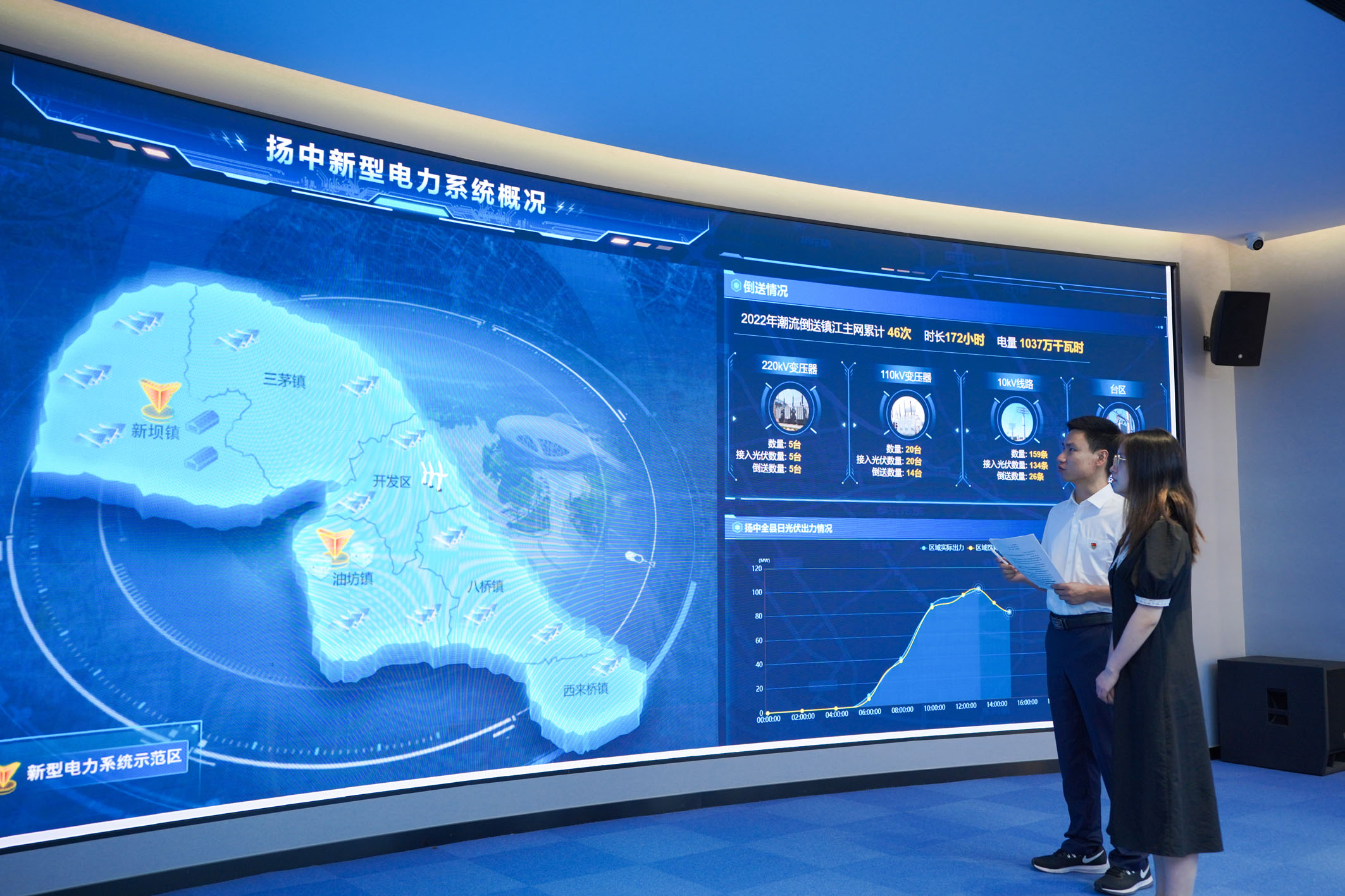 圖為在國網(wǎng)揚中市供電公司,工作人員正在介紹新型電力系統(tǒng)建設。資料照片