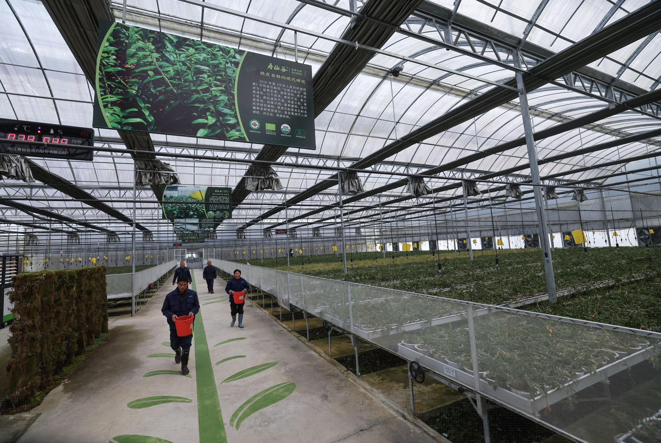 圖為近日拍攝的金華市武義縣浙江壽仙谷醫(yī)藥股份有限公司的有機(jī)國藥共富工坊數(shù)字化大棚。