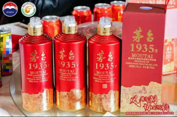 先來(lái)看廣東潮州。在潮州潮安區(qū)鳳塘企業(yè)家協(xié)會(huì)第六屆第二次會(huì)員大會(huì)暨2024年年會(huì)、潮州市旅游行業(yè)協(xié)會(huì)第三屆第四次會(huì)員大會(huì)暨年會(huì)慶典上,都能看到茅臺(tái)1935的身影,其紅色瓶身與金色浮雕,遍布會(huì)場(chǎng)入口、舞臺(tái)邊及晚宴餐桌,為新春盛會(huì)增添喜慶祝福。