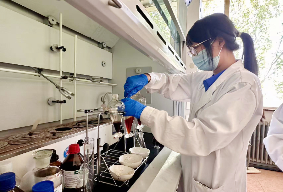 鴻茅藥業(yè)實驗室工作人員進(jìn)行藥液檢測