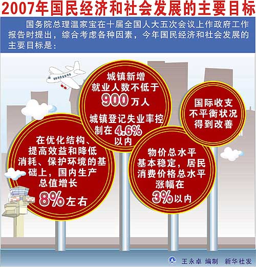 “物價(jià)總水平基本穩(wěn)定,居民消費(fèi)價(jià)格總水平漲幅在3%以內(nèi)。”今年政府工作報(bào)告對(duì)物價(jià)調(diào)控目標(biāo)作了這樣的安排,3%的預(yù)定目標(biāo)與上年的年度目標(biāo)相同。 當(dāng)前的經(jīng)濟(jì)形勢(shì)是“高增長(zhǎng)、低通脹”,以2006年為例,經(jīng)濟(jì)增長(zhǎng)率為10.7%,而居民消費(fèi)價(jià)格漲幅僅為1.5%,物價(jià)總體溫和。 不過,中國(guó)工商銀行安徽分行行長(zhǎng)、全國(guó)人大代表趙鵬指出,政府工作報(bào)告在介紹完經(jīng)濟(jì)增長(zhǎng)連續(xù)四年達(dá)到或略高于10%之后,接下來就說“沒有出現(xiàn)明顯通貨膨脹”,說明在經(jīng)濟(jì)高增長(zhǎng)的背景下,政府對(duì)通貨膨脹問題高度關(guān)注。 西南財(cái)經(jīng)大學(xué)教授、全國(guó)人大代表秦池江認(rèn)為,2006年居民消費(fèi)價(jià)格總水平上漲1.5%雖然不高,但這并不意味著當(dāng)前通貨膨脹壓力很小,必須有所防范。今年設(shè)定物價(jià)3%的目標(biāo),其面臨的形勢(shì)也是這樣。 當(dāng)前,銀行體系流動(dòng)性過剩給整個(gè)物價(jià)形勢(shì)帶來不小壓力。北京大學(xué)國(guó)民經(jīng)濟(jì)核算研究中心蔡志洲研究員表示,由于國(guó)際收支不平衡造成央行不斷放出基礎(chǔ)貨幣,貨幣供給增加的壓力正在加大。貨幣供給超過實(shí)際需求,就容易造成通貨膨脹壓力。 而資源性產(chǎn)品價(jià)格改革,也將增加物價(jià)上行壓力。記者從有關(guān)部門了解到,為更好地采用經(jīng)濟(jì)手段促進(jìn)節(jié)能降耗,為使資源價(jià)格更好地反映資源稀缺度,資源性產(chǎn)品價(jià)格將總體上行,會(huì)帶動(dòng)居民消費(fèi)價(jià)格一定程度的上漲。 此外,去年底部分地區(qū)糧食價(jià)格的上漲,對(duì)今年居民消費(fèi)價(jià)格的影響也將逐漸釋放和表現(xiàn)出來。部分公共產(chǎn)品和服務(wù)價(jià)格的調(diào)整也會(huì)帶動(dòng)居民消費(fèi)價(jià)格上行。 綜合上述原因,央行等部門也認(rèn)為,當(dāng)前物價(jià)上行風(fēng)險(xiǎn)要大于下行風(fēng)險(xiǎn)。雖有壓力,但今后并不會(huì)出現(xiàn)明顯的通脹。 記者從有關(guān)部門了解到,當(dāng)前社會(huì)供求關(guān)系總體平衡,供略大于求,這總體上制約了明顯通貨膨脹的出現(xiàn)。更重要的是,經(jīng)過了這么多年的宏觀調(diào)控實(shí)踐,政府對(duì)市場(chǎng)規(guī)律的認(rèn)識(shí)不斷深化,調(diào)控藝術(shù)和手段不斷完善,完全有能力應(yīng)對(duì)通貨膨脹的壓力。 “3%是物價(jià)溫和上漲的上限!辈讨局扪芯繂T指出,這個(gè)指標(biāo)是切合實(shí)際、留有余地的,政府通過回收流動(dòng)性、穩(wěn)定糧食價(jià)格、把握資源性產(chǎn)品和公共服務(wù)價(jià)格調(diào)整節(jié)奏等方式,完全能夠?qū)崿F(xiàn)這個(gè)物價(jià)調(diào)控目標(biāo)。