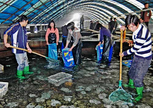 重大食品安全事件幾乎都是媒體曝光在先,相關部門查處在后!熬褪且驗槭称钒踩O(jiān)管制度有硬傷,才導致七八頂‘大蓋帽’也管不了問題食品的現狀!标惾f志委員一語道破食品安全事故頻發(fā)的根本原因。針對目前食品監(jiān)管存在的問題,“從制度上入手”成為代表委員們的共識。 圖為山東省日照市一家養(yǎng)殖企業(yè)的員工在養(yǎng)殖大棚內捕撈藥殘超標的多寶魚,準備銷毀(資料照片)。