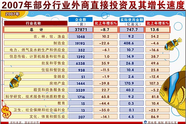 世界銀行在分析中國引資政策和環(huán)境后發(fā)表的《中國利用外資的前景和戰(zhàn)略研究》報告中指出,2006年至2010年期間,中國將占到預計流入發(fā)展中國家的2500億美元外商直接投資(FDI)的30%左右。照此流量,張銳按產(chǎn)業(yè)轉移理論分析,跨國公司產(chǎn)業(yè)轉移一般遵循先制造業(yè)后服務業(yè),然后是研發(fā)中心的遞進過程。目前,外企進入中國已經(jīng)完成了第一階段進入了第二階段。 中國自加入WTO以后,市場變得更加開放,外資也開始向國內不同產(chǎn)業(yè)擴展。來自中美商會的統(tǒng)計表明,目前,服務業(yè)、物流、銀行和旅游已成為美商投資的新增長點。 在金融服務方面,更多外資銀行在中國增設了分公司,外資參股中國銀行業(yè)的規(guī)模迅速擴大,農(nóng)村市場向外資敞開了大門。在物流方面,越來越多的外國物流企業(yè)來華投資,中國也相應的為外資物流企業(yè)出臺了指南及一套物流企業(yè)國家標準。特別是伴隨著制造業(yè)與物流業(yè)的融合,物流供應鏈越來越成為一個炙手可熱的產(chǎn)業(yè),稀缺的物流網(wǎng)絡資源將吊起外企的新胃口。在航空方面,中美商會出臺的2007年白皮書中說,預計未來20年里,中國民航業(yè)將繼續(xù)以每年高于9%的速度增長。照此,中國將很快成為繼美國之后世界第二大民用航空市場,從而為美國供應商提供極大的商業(yè)機會。 有資料表明,從現(xiàn)在至2010年,包括工程承包、設計咨詢、技術轉讓和物流運輸在內的中國服務貿(mào)易業(yè)將保持年均20%以上的增長態(tài)勢。這給全球的各種外資提供了機會。
